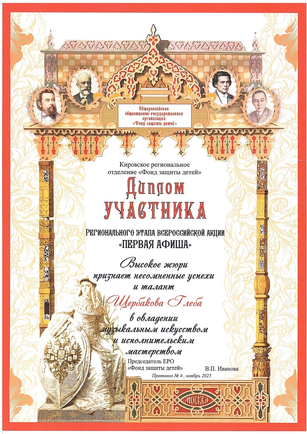 - Региональный этап Всероссийской акции «Первая афиша», г. Киров: Щербаков Глеб – Диплом;